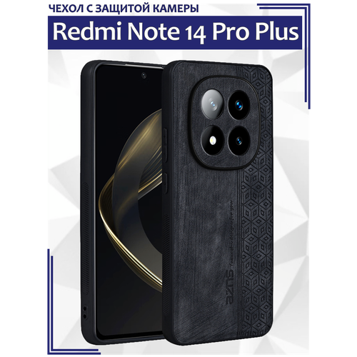 Чехол для Xiaomi Redmi Note 14 Pro Plus кожаный с тиснением / Редми Ноут 14 Про плюс с защитой камеры (черная)