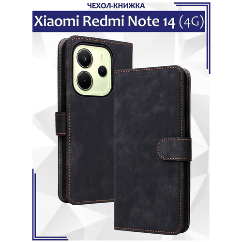 Чехол книжка для Xiaomi Redmi Note 14 (4G) c магнитной застежкой / Сяоми Редми Ноут 14 4G c отделением под карты (черная)