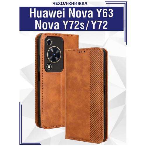 Чехол книжка для Huawei Nova Y63 /Nova Y72s /Nova Y72 с магнитом и отделением под карты / Хуавей Нова Y63, Y72s, Y72 (коричневая)