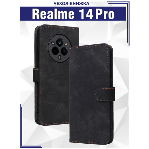 Чехол книжка для Realme 14 Pro (5G) c магнитной застежкой / Реалми 14 Про c отделением под карты (черная)