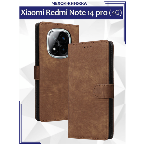 Чехол книжка для Xiaomi Redmi Note 14 Pro (4G) c магнитной застежкой / Сяоми Редми Ноут 14 Про 4G c отделением под карты (коричневая)