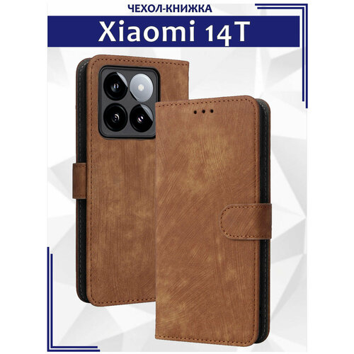 Чехол книжка для Xiaomi 14T c магнитной застежкой / Сяоми 14Т c отделением под карты (коричневая)
