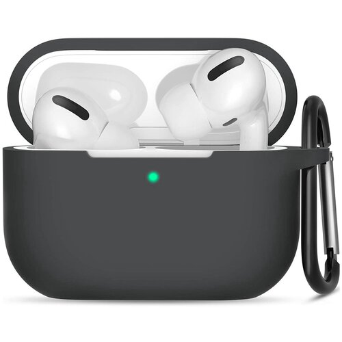 Ультратонкий чехол для Apple AirPods Pro/ Силиконовый кейс с карабином для беспроводных наушников Эпл Аирподс Про из гибкого силикона (Advanced Grey)