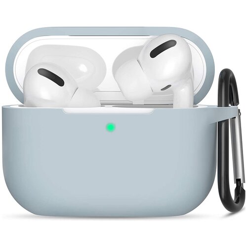 Ультратонкий чехол для Apple AirPods Pro/ Силиконовый кейс с карабином для беспроводных наушников Эпл Аирподс Про из гибкого силикона (Light Blue)