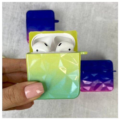 Ультратонкий чехол для Apple AirPods 1/2/ Ударопрочный силиконовый кейс для беспроводных наушников Эпл Аирподс 1/2 Ombre Prizm (Желто-зеленый)