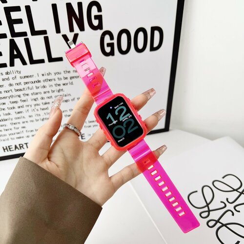 Прозрачный ремешок для Xiaomi Mi Band 8 Pro/9 Pro и Redmi Watch 4/5, розово-красный