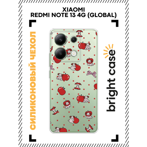 Чехол на Xiaomi Redmi Note 13 4G (Global) / Сяоми Редми Нот 13 4G с принтом Собачки и яблоки, прозрачный