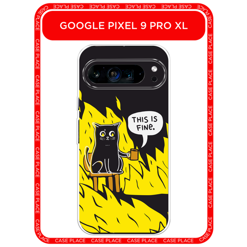Чехол на Google Pixel 9 Pro XL / Гугл Пиксель 9 Про XL с принтом This is fine cat