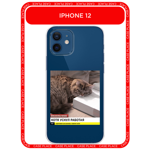 Чехол на Apple iPhone 12/12 Pro / Айфон 12/12 Про с принтом Кот уснул работая, прозрачный