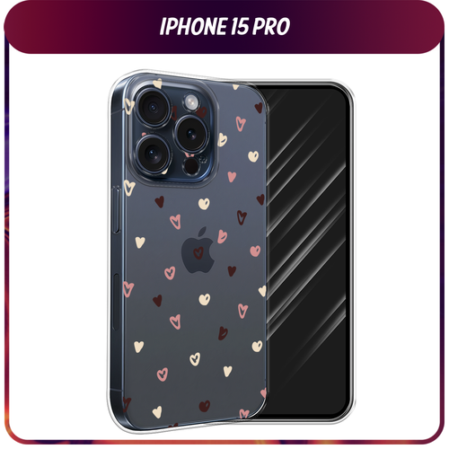 Чехол на Apple iPhone 15 Pro / Айфон 15 Про с принтом Сердечки паттерн рисунок, прозрачный