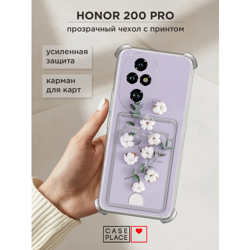 Чехол на Honor 200 Pro (Хонор 200 Про) с картой и принтом Веточка хлопка