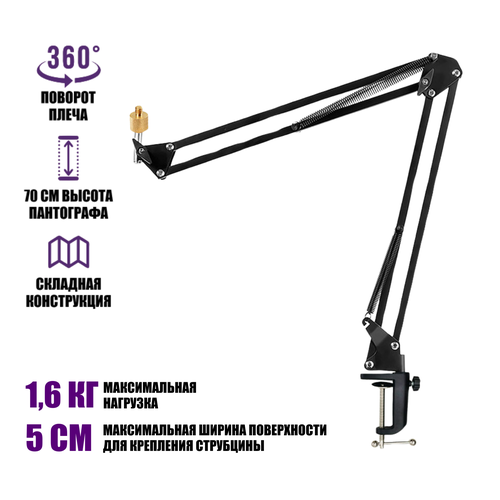 Настольная стойка пантограф ST-34A с усиленной струбциной для камеры весом до 1.6 кг