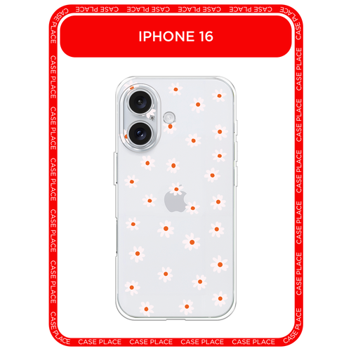 Чехол на Apple iPhone 16 / Айфон 16 с принтом Ромашки, прозрачный