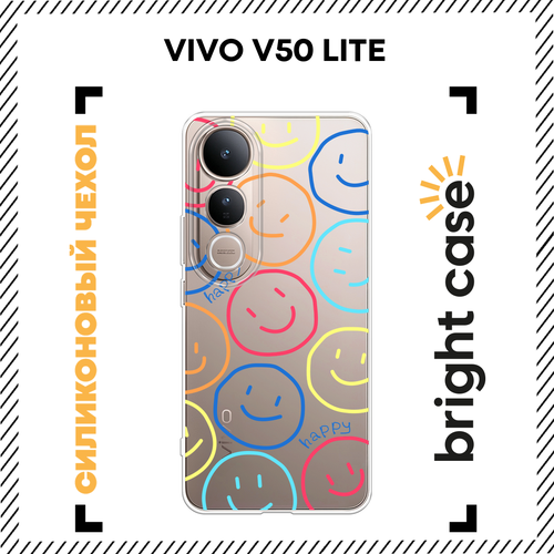 Чехол на Vivo V50 lite / Виво В50 Лайт с принтом Смайлы, прозрачный