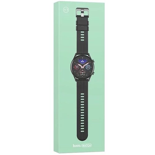 Смарт-часы Hoco Y7, 1.32", 360x360, IP68, BT5.0, 330 мАч, будильник, шагомер, чёрные