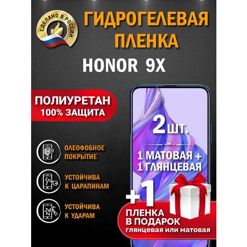 Защитная гидрогелевая пленка на экран HONOR 9X, глянцевая+ матовая, 2 шт.