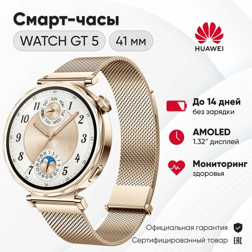 Смарт-часы HUAWEI Watch GT 5, 41 мм, 1.32" AMOLED, GPS, золотой