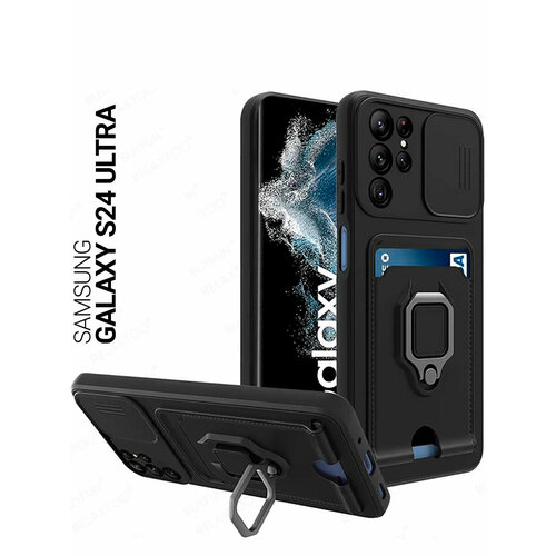 Противоударный чехол на Samsung Galaxy S24 Ultra с защитой камеры и карманом