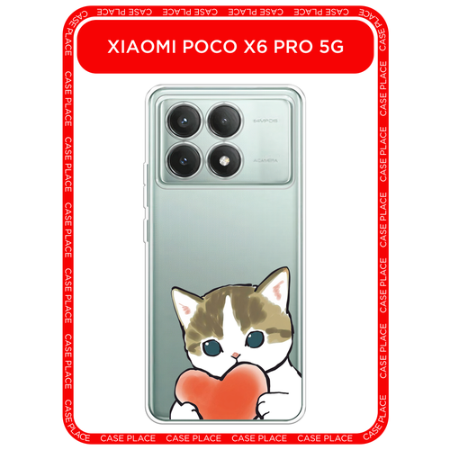 Чехол на Xiaomi Poco X6 PRO 5G / Поко X6 Про 5G с принтом Котик с сердечком, прозрачный