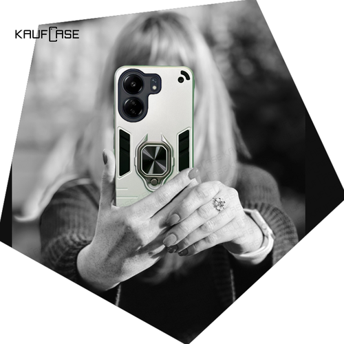 Противоударный чехол на Xiaomi Redmi 13C /Poco C65 (6.74"), серебро. Кольцо-держатель и магнитное крепление, яркие пластиковые защитные вставки