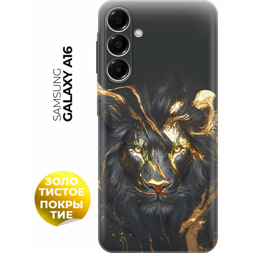 Силиконовый чехол на Samsung Galaxy A16 с принтом "Золотой лев" матовый черный