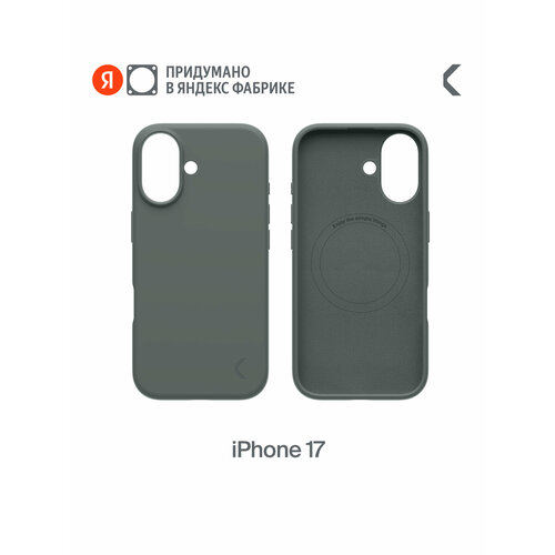 Силиконовый чехол COMMO Shield для iPhone 17 с поддержкой беспроводной зарядки, серо-зелёный