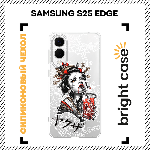 Чехол на Samsung Galaxy S25 Edge / Самсунг Галакси С25 Эдж с принтом Гейша с напитком, прозрачный