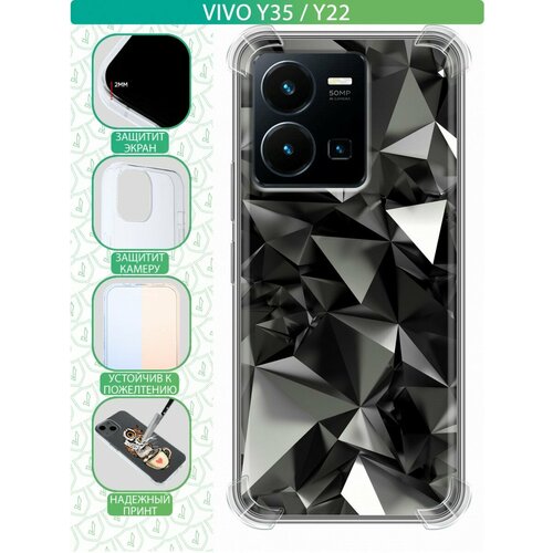 Дизайнерский силиконовый с усиленными углами чехол для Виво У22 / Vivo Y22 Черные кристаллы