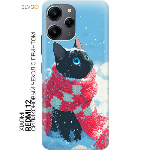 Силиконовый чехол на Xiaomi Redmi 12 с принтом Зимний аниме кот, trn