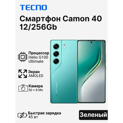 Смартфон TECNO Camon 40 12/256Gb Зеленый, AMOLED, NFC, камера 50 МП