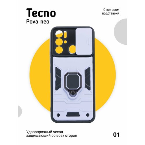 Чехол на Tecno pova Neo с кольцом и шторкой для камеры, сиреневый