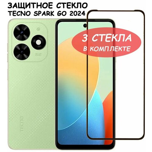 Защитное стекло "Полное покрытие" для Tecno Spark Go 2024 / Текно спарк Го 2024 Черный - 3 стекла в комплекте