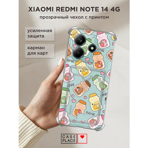 Чехол на Xiaomi Redmi Note 14 4G (Редми Нот 14 4G) с картой и принтом Динозаврики с напитками