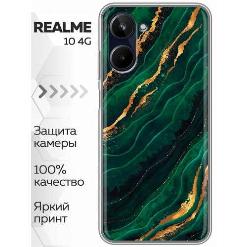 Дизайнерский силиконовый чехол для Реалме 10 4Ж / Realme 10 4G Мрамор зеленое золото