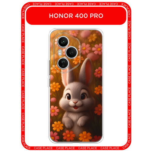 Чехол на Honor 400 Pro / Хонор 400 Про с принтом Серый зайка на лугу