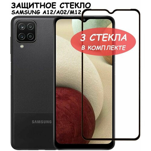 Защитное стекло "Полное покрытие" для Samsung A125F A022G M127F A127F (A12 A02 M12 A12 Nacho) самсунг а12 а02 м12 а12 начо Черное - 3 стекла в комплекте