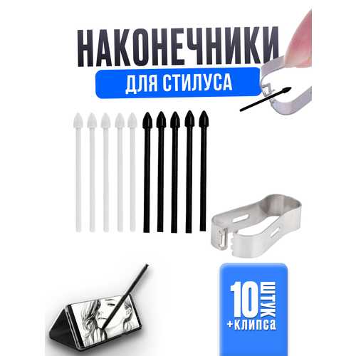 Стержень - наконечник сменный для стилуса, пера, 10 штук: 5 белых и 5 чёрных