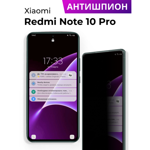Защитное стекло Антишпион на Xiaomi Redmi Note 10 Pro, противоударное стекло для Сяоми Редми Нот 10 Про