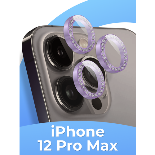 Стекла (линзы) для камеры на iPhone 12 Pro Max / Набор стекол 3шт. на камеру со стразами, Светло-фиолетовый