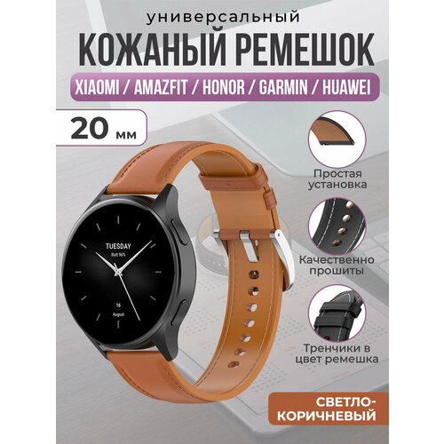 Универсальный кожаный ремешок для Xiaomi, Amazfit, Honor, Garmin, Huawei, 20 мм, светло-коричневый