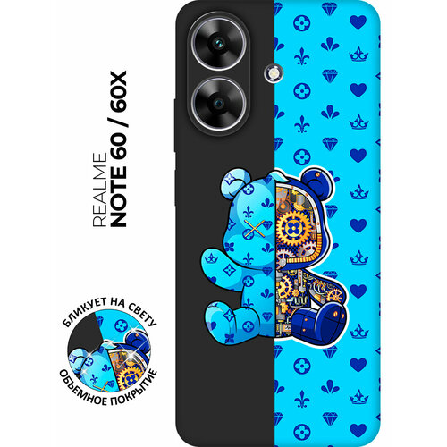 Силиконовый чехол на Realme Note 60 / 60x с принтом "Синий Мишка" матовый черный