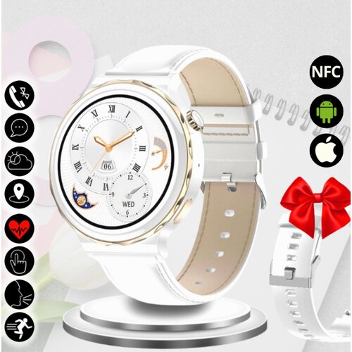 Смарт часы круглые женские наручные умные X6 (2 ремешка) Золото