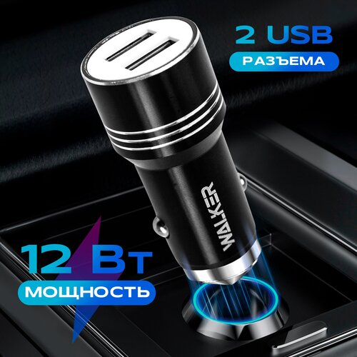 Автомобильная зарядка для телефона универсальная, 2 USB, 2.4 А, WALKER, WCR-21, черная / зарядное устройство в прикуриватель, автозарядка в машину