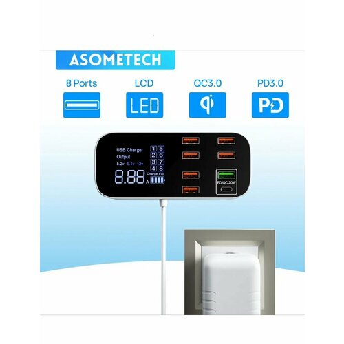 Сетевое ЗУ Asometech WLX-A9D+ с цифровым дисплеем и 8 USB