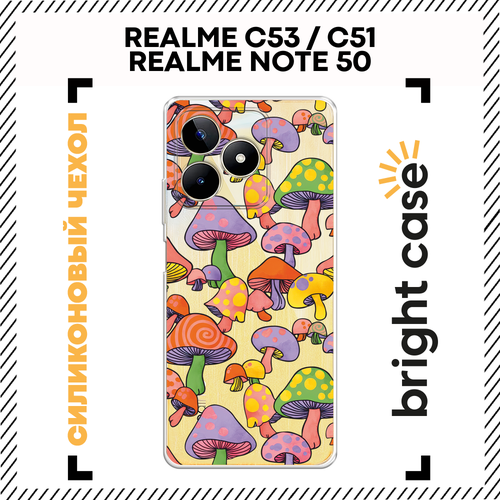Чехол на Realme C53/C51/Note 50 / Реалми С53/С51/Нот 50 с принтом Цветные грибы, прозрачный