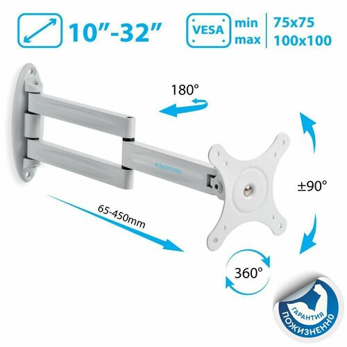 Кронштейн для телевизора наклонно-поворотный Remounts RMM 222B 17"-43" ТВ vesa 200х200