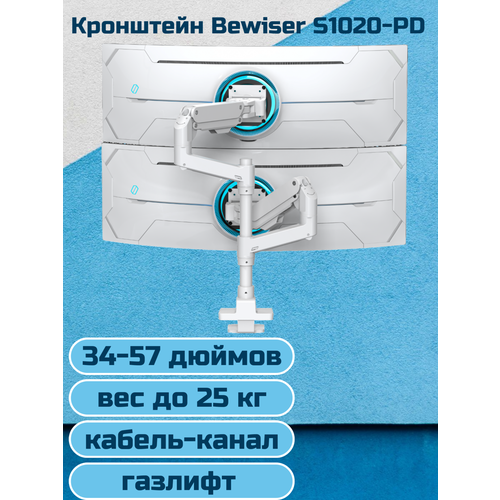 Настольный кронштейн для игровых мониторов Bewiser S1020-PD, 34-57" до 25 кг, белый