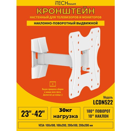 Настенный кронштейн для телевизора iTECHmount LCDN522 White с выносом, функцией наклона и поворота