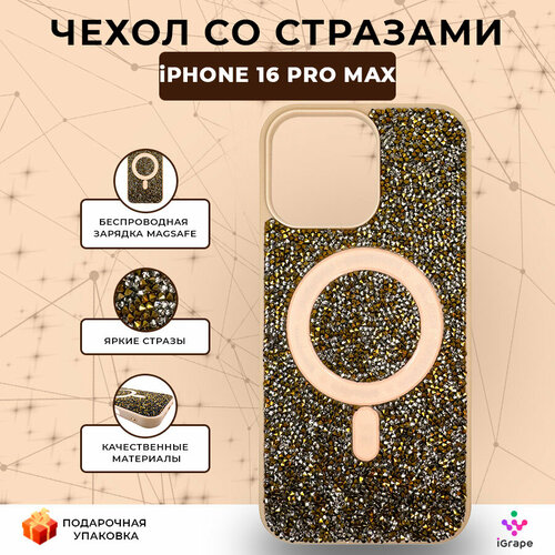 Чехол со стразами с MagSafe для iPhone 16 Pro Max, iGrape (Золотой) / чехол на айфон 16 про макс