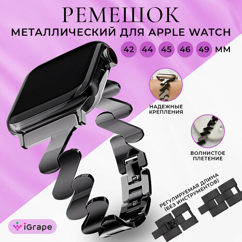 Металлический ремешок волнистое плетение для Apple Watch 42/44/45/46/49 мм, iGrape (Черный)